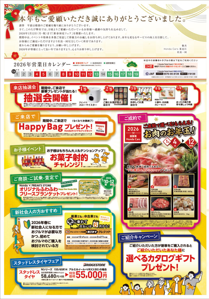 ホンダカーズ東近江の新春初売りフェア!