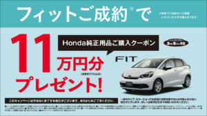 フィットご成約かつご登録でHonda純正用品購入クーポン11万円分をプレゼント!