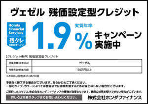 ヴェゼル 残クレ実質年率1.9%キャンペーン実施中!
